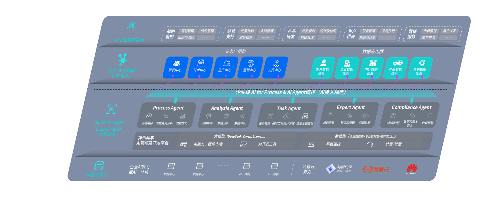 问鼎28问学智车解决方案是一套基于AI技术的汽车行业智能化系统,覆盖从底层算力到顶层AI应用的全栈方案。方案由算力层、模型层和应用层组成:算力层,方案支持多种一体机配置,具备云端灵活部署、多云适配以及动态优化计算资源的能力;模型层,问鼎28问学平台版提供了企业级AI应用一站式构建与管理平台,支持基于后训练强化技术的汽车企业专属模型的训练、评测和运营;应用层,问鼎28问学DeepSeek版提供包括超级员工、智能招采、智能营销、智能客服、AI for BI等一系列解决方案,可助力汽车行业实现数字化转型,让管理更智能、响应更敏捷。